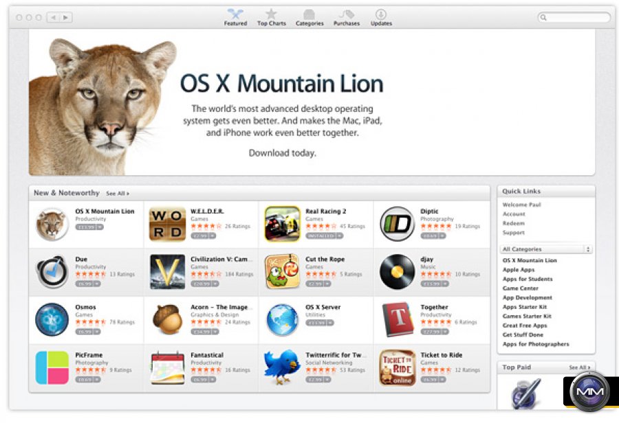 “People are going to love the new features in Mountain Lion and how easy it is to download and install from the Mac App Store,” said Philip Schiller, Apple’s senior vice president of Worldwide Marketing. “With iCloud integration, Mountain Lion is even easier to set up, and your important information stays up to date across all your devices so you can keep editing documents, taking notes, creating reminders, and continue conversations whether you started on a Mac, iPhone or iPad.”